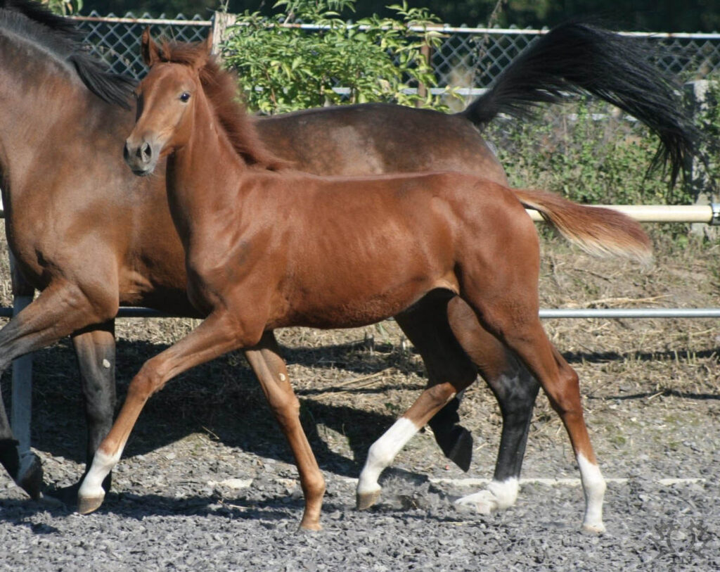 Züchterisch wie auch sportlich ist die am 26. März 2025 geborene Dunkelfuchsstute Soramira TN prädestiniert für die Vielseitigkeit. Vater, der HLP-Sieger für Vielseitigkeit und Elitehengst Le Chevalier (auch Nurmi-Sieger). Mutter Prämienstute SorayaTN, eine Tochter des Domhardt – Graf Lindenau. Züchterische Gründe sprechen dafür, weil sie aus der seltenen aber feinen Linie der Walküre von Diakon stammt, die der Trakehner-Zucht in der Vergangenheit schon überragende Pferde gestellt hat (zum Beispiel Sachsenköniginoder Samland, Siegerin des Norddeutschen Stutenchampionats). Sportlich spricht die Genetik für sie: diese wird bestimmt durch Pferde wie Cavallieri xx, Ramzes x, Marduc, Abu Afas ox und mehrfach den hochgeachteten Leistungsträger Modus xx.